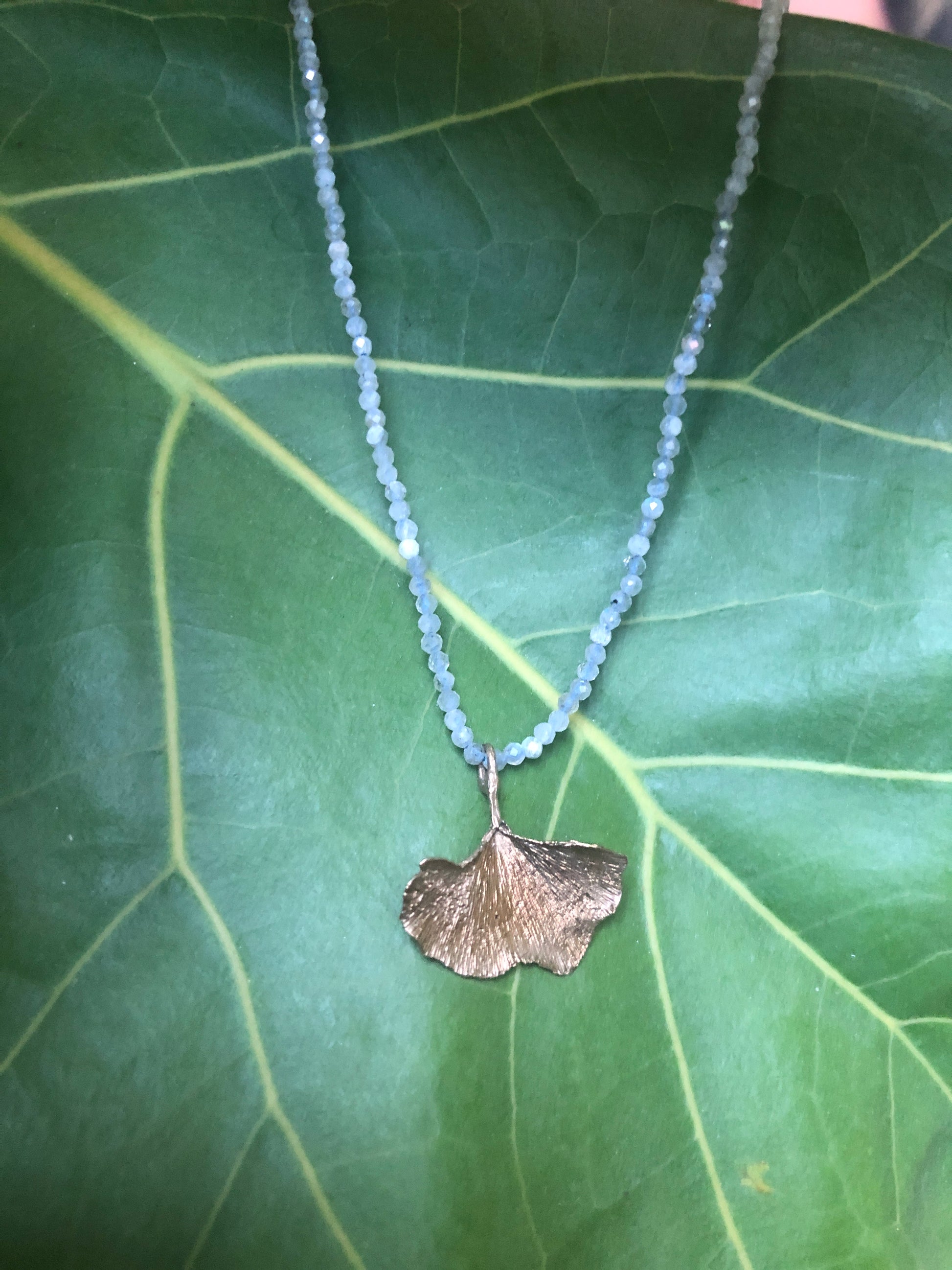 Questa collana unica è ispirata alla foglia di ginkgo, simbolo di longevità e speranza. Realizzata con cura e attenzione ai dettagli, rappresenta l'albero più antico della terra. Portala con te ogni giorno per ricordare il significato di speranza, longevità e perseveranza